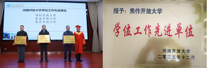 会上对学位工作中表现优异的先进单位和先进专业进行了表彰。其中,洛阳开放大学、省直开放大学、焦作开放大学荣获“学位工作先进单位”称号,我校学位工作受到河南开放大学表彰。